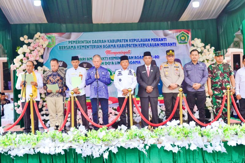 Selatpanjang-Riau,  riau21.net – Bupati Kabupaten Kepulauan Meranti, AKBP (Purn) H. Asmar, memimpin Upacara Peringatan Hari Amal Bakti (HAB) ke-80 Kementerian Agama Republik Indonesia Tahun 2026 yang dirangkaikan dengan doa bersama lintas agama. Kegiatan tersebut berlangsung di halaman Kantor Kementerian Agama Kabupaten Kepulauan Meranti,  Kamis (8/01/2026).Peringatan HAB ke-80 tahun ini mengusung tema “Umat Rukun dan Sinergi, Indonesia Damai dan Maju”. Dalam amanatnya, Bupati Asmar menegaskan bahwa kerukunan umat beragama tidak hanya dimaknai sebagai ketiadaan konflik, tetapi sebagai energi kebangsaan yang produktif untuk mendorong kemajuan bangsa.