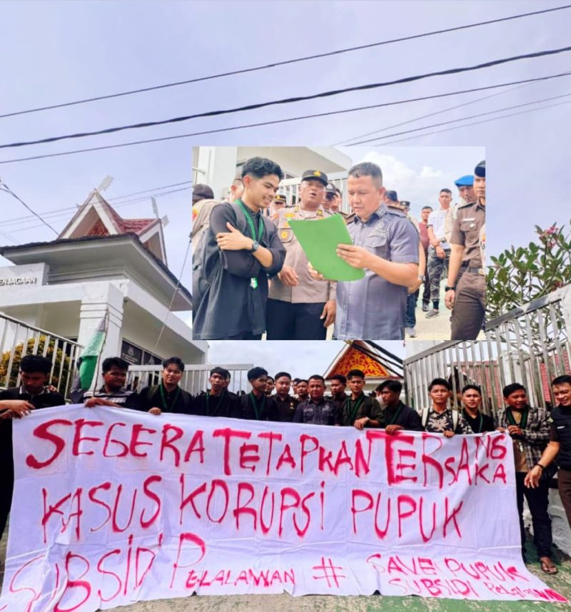 Koordinator Umum aksi, Meldiato, selaku Ketua Umum HMI Korkom Pelalawan, menyatakan bahwa Kejari Pelalawan telah gagal menunjukkan keberanian dan komitmen serius dalam menuntaskan kasus korupsi pupuk subsidi yang telah lama bergulir tanpa kejelasan tersangka.